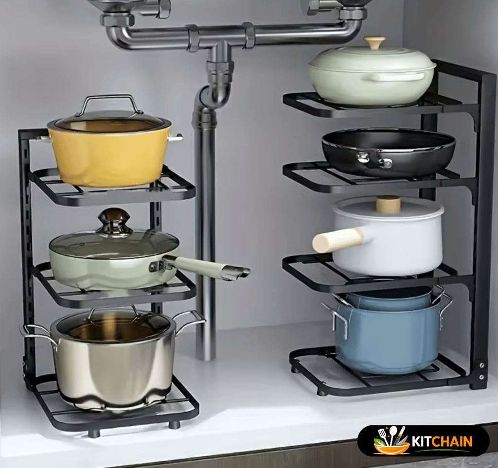 Adjustable Pot Rack Organizer – Stainless Steel Kitchen Storage Rack